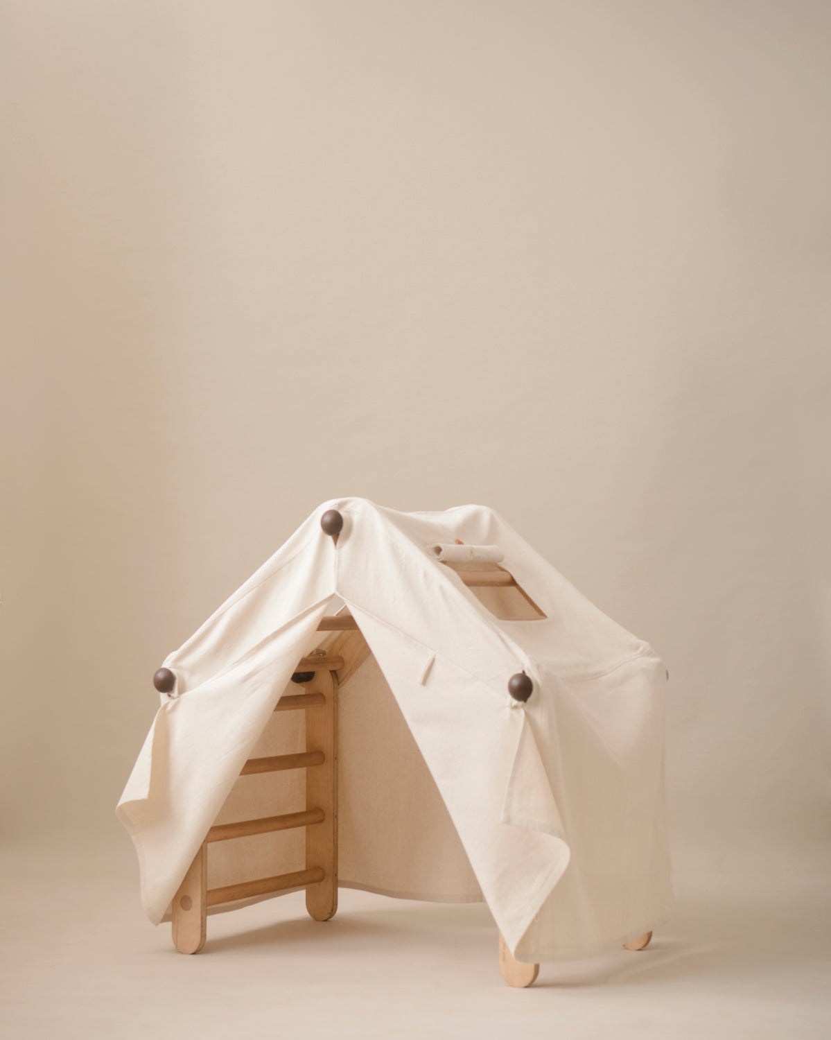 The Tent converts the Bloon Pikler MAX (our transformable Pikler Triangle) into this warm nook of a hideout! It’s the perfect spot, and ultimately inviting for kids of all ages.