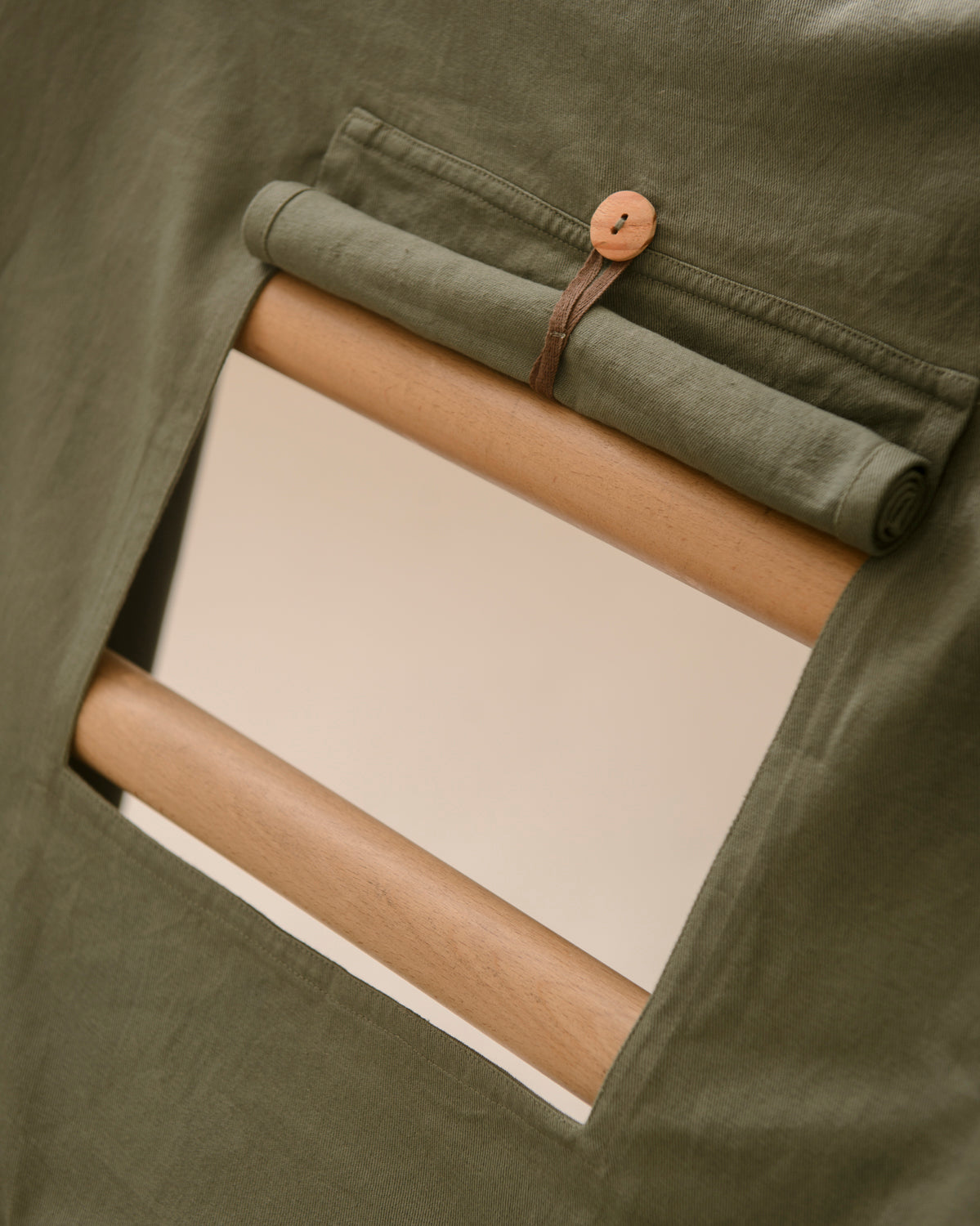 Made using 100% cotton twill, and dyed in natural shades. and the wooden buttons are entirely handcrafted!