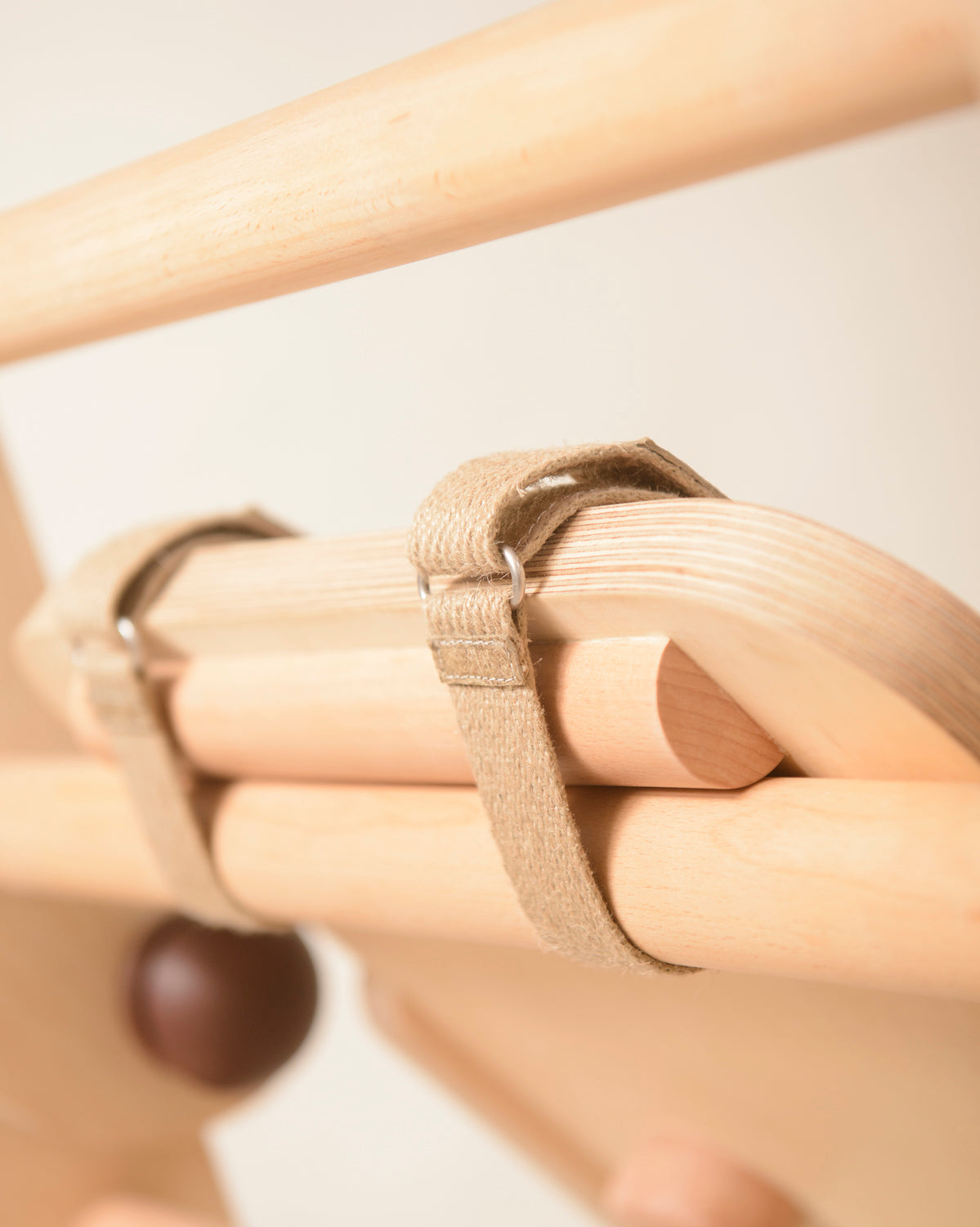 The Tent is a simple slip-on design and can be taken on and off easily. Fits the Bloon Pikler MAX in 'house' position. A handcrafted wooden button serves as a door-knob and ‘locks’ the door, to make the nook even cosier.