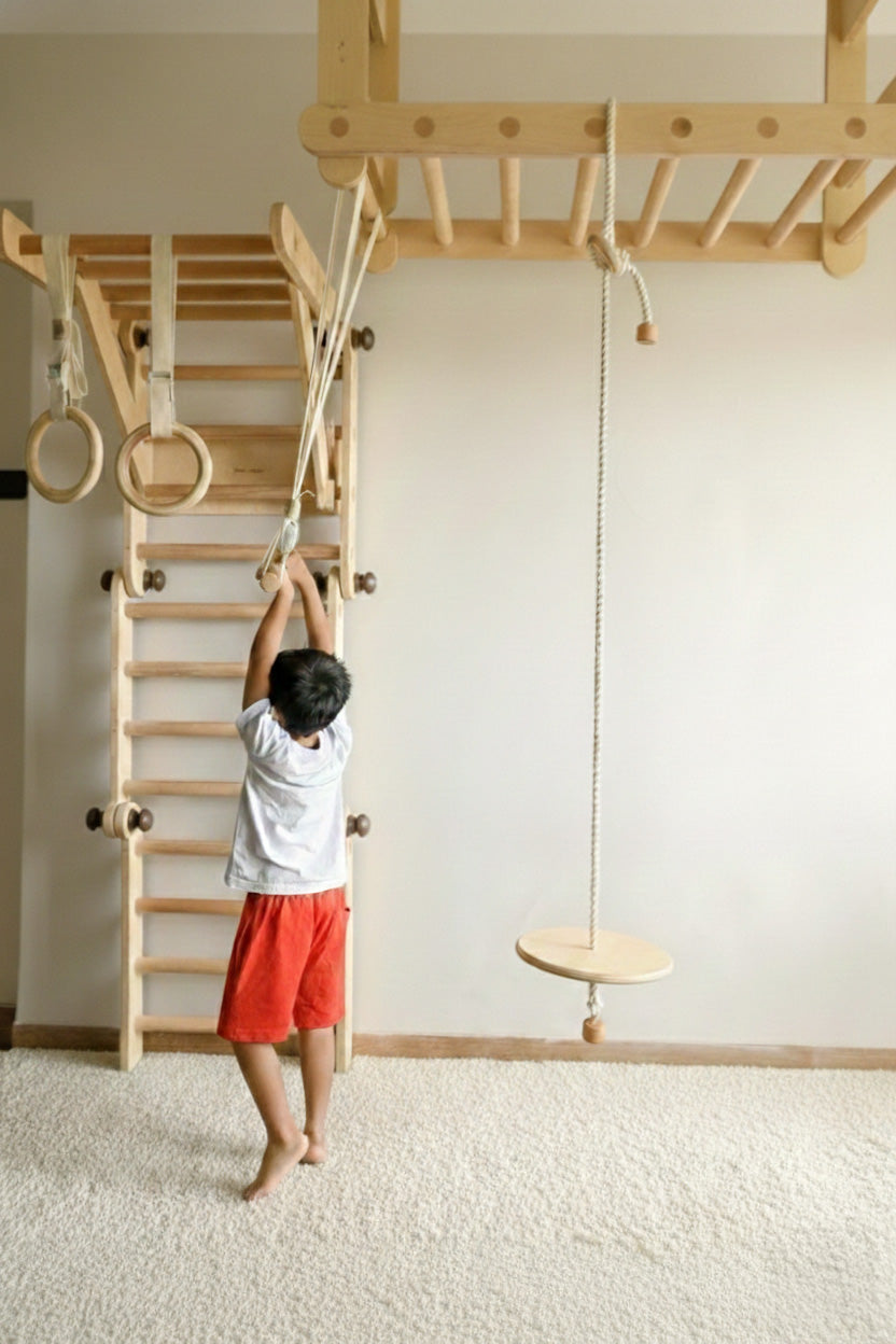 - Set contains Pikler Max with Wall Hook + Ceiling Pikler + Roman Rings, Trapeze Bar and Disc Swing
