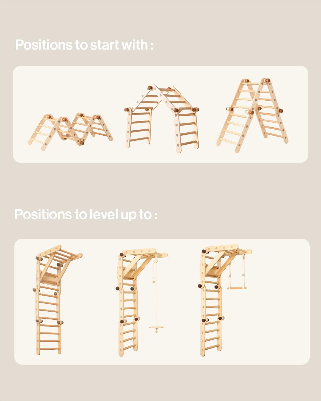 Our Pikler Sets are designed to grow with children, levelling up as they do.
