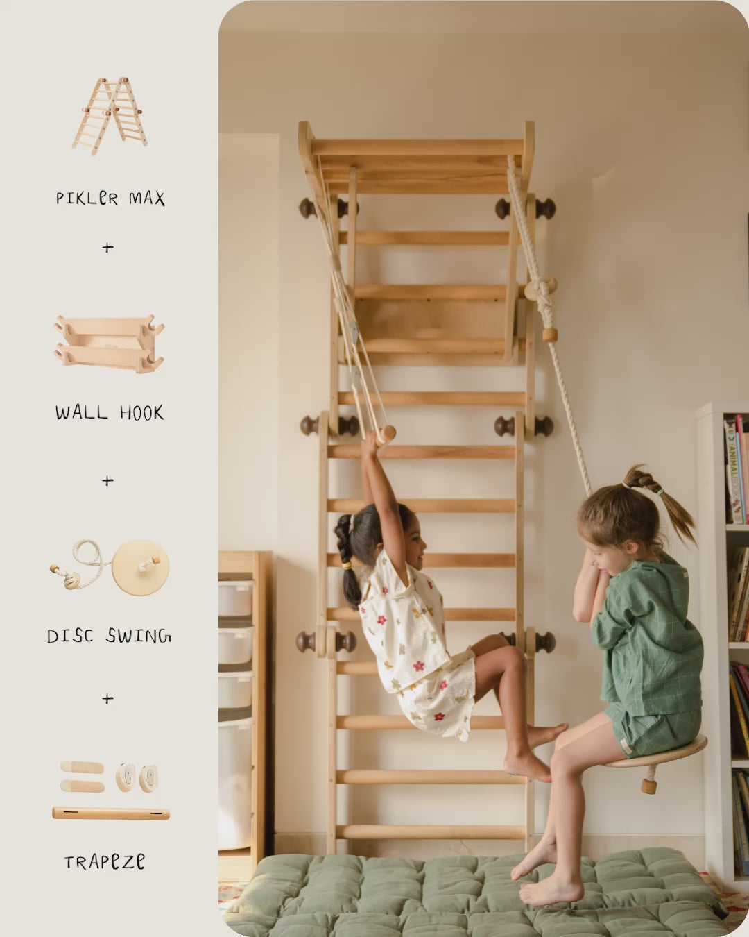 • Pikler MAX with Wall Hook (Usable on the Wall + on the Ground), Disc Swing and Trapeze Bar