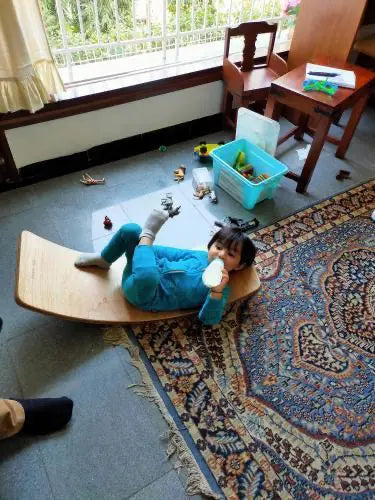 I bought Balance Board 2.0 for my 18-month-old. She loved it, and we use it every day. I am surprised by how she uses it in many ways on her own, as a sofa, as a bridge to walk on, as a shelter for her animals, as a cave to hide her toys, as an activity table — the list goes on. I am sure she will explore many other ways to play with it as she grows.