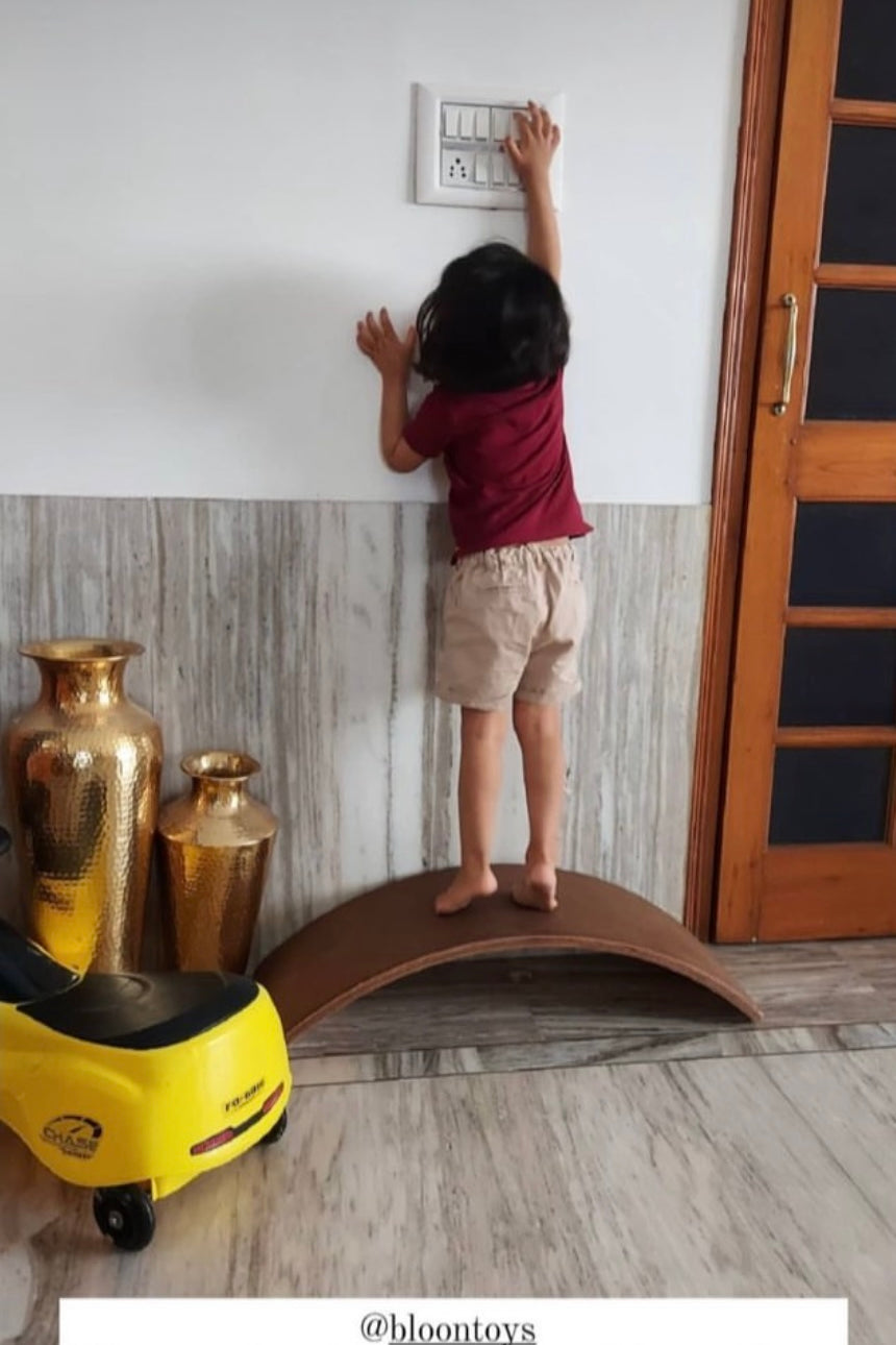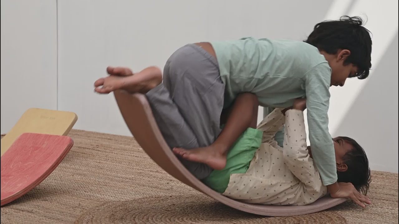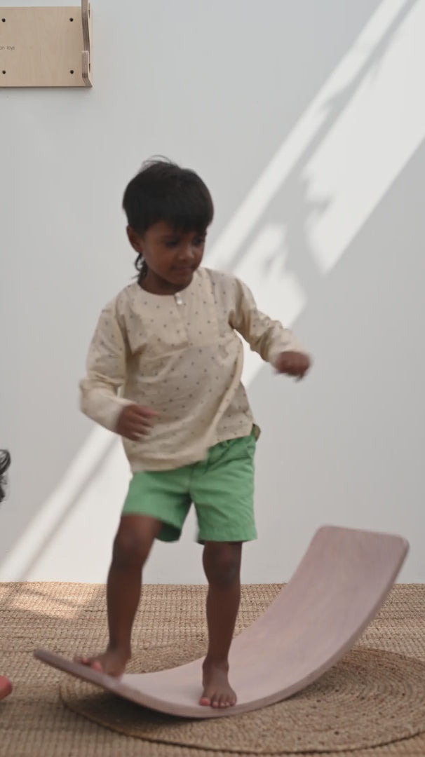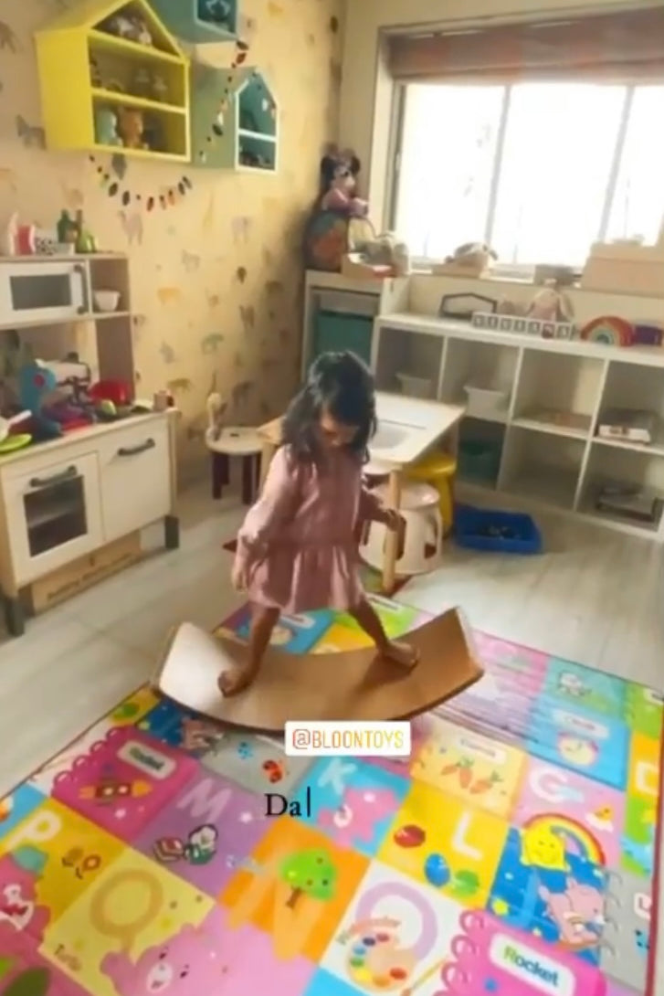 Inspired by the Waldorf classic balance board, these unique curved wooden boards are designed to help children develop balance, poise, co-ordination, self and spatial awareness!