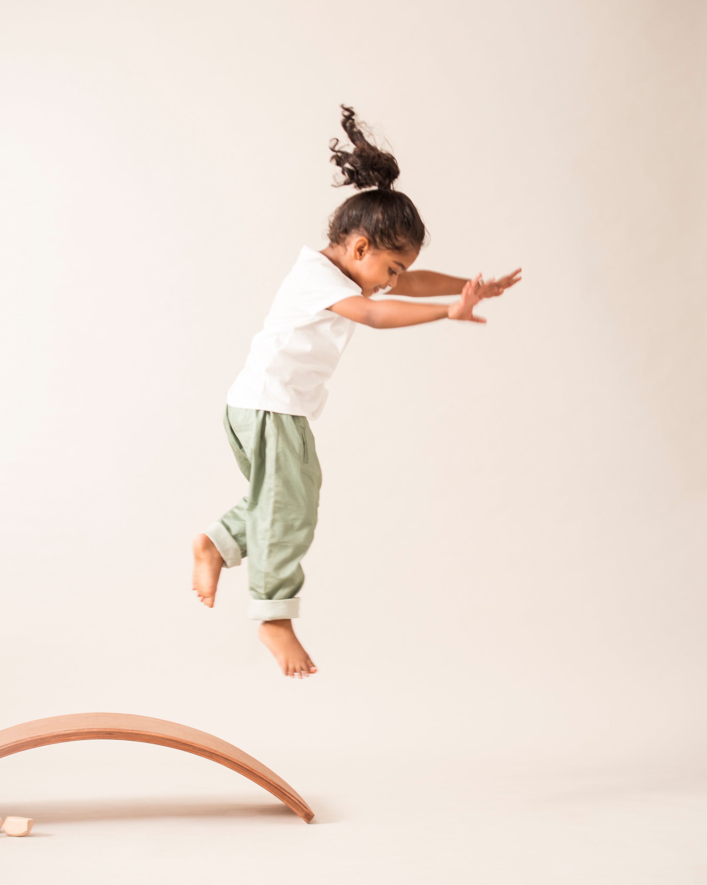 Inspired by the Waldorf classic balance board, these unique curved wooden boards were designed to help children develop balance, poise, co-ordination, self and spatial awareness. Its form also gives it the potential to transform with the child’s imagination. Watch it become a rainbow, a stool, a bridge, a tunnel, a home, a road...