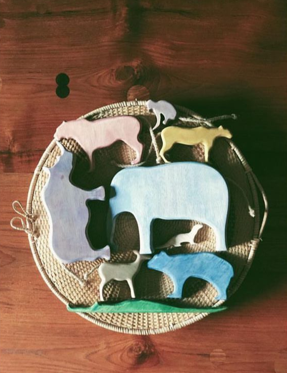 Simple animal forms invite children to enter a world of imaginative play.