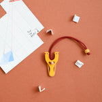 Made of Birch plywood slingshot, wooden bead and faux leather strap.