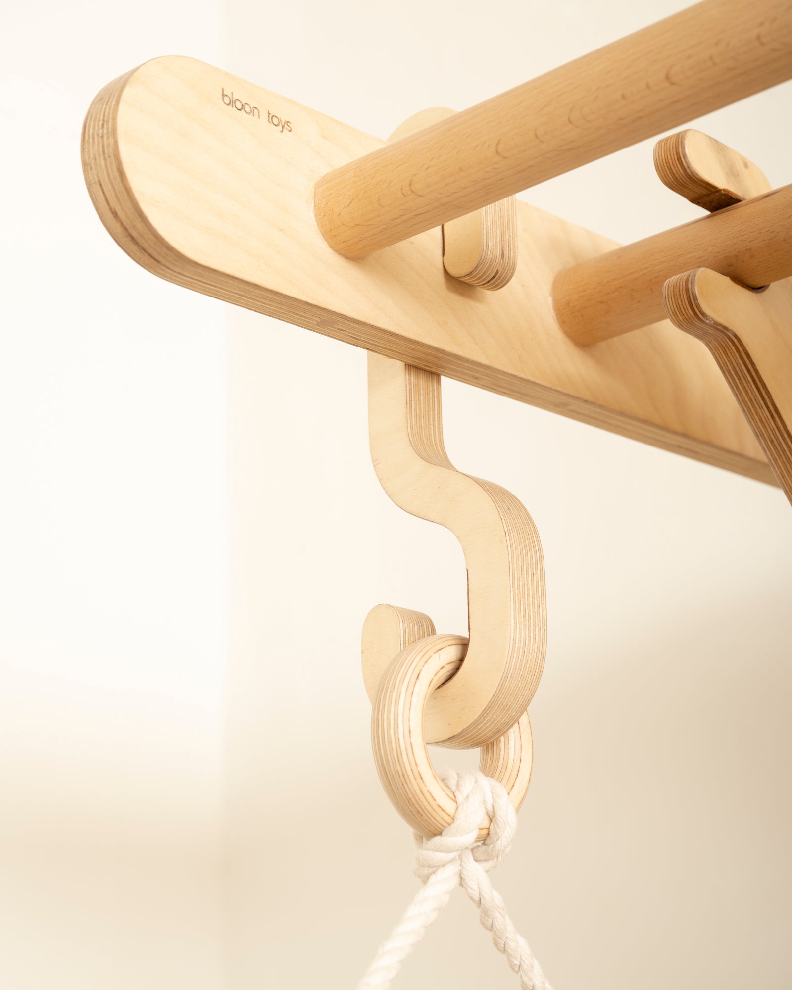 - Hang the S-hook on the Pikler rung (or any sturdy rung) or on the Pikler arm