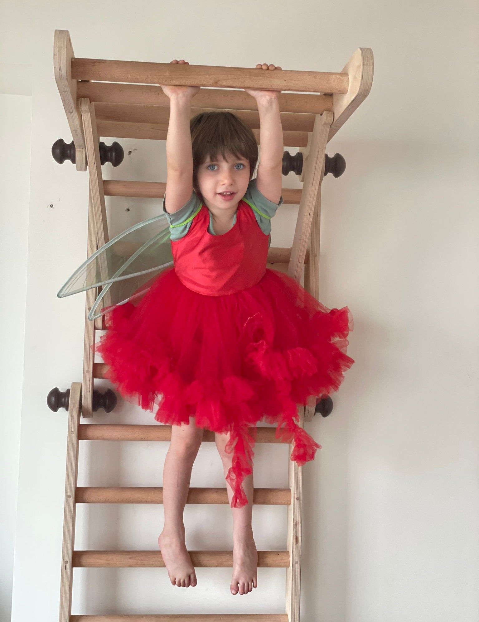 She absolutely loves it! We are very impressed with the quality; it is super easy to modify the shape and is really versatile. The gear lock system at the joints feels super safe, allowing for all sorts of asymmetric shapes. Our daughter and her friends are engaged with this for long stretches of time. We even used the strong cotton belts from the packaging to add some swing elements, which work great for balance and fun. The zero-waste packaging was a wonderful bonus!